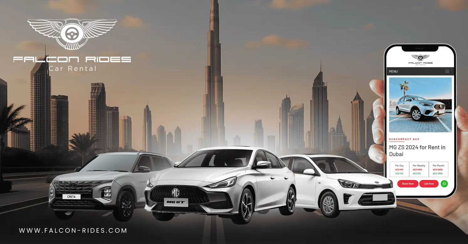 Falcon Rides delivers fast, reliable, and budget-friendly car rental service in Dubai. With modern cars, transparent pricing, and doorstep delivery, we make every journey smoother and simpler.